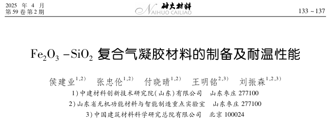 侯建业,张忠伦,付晓晴,等.Fe2O3-SiO2复合气凝胶材料的制备及耐温性能[J].耐火材料,2025,59(02):133-137.
