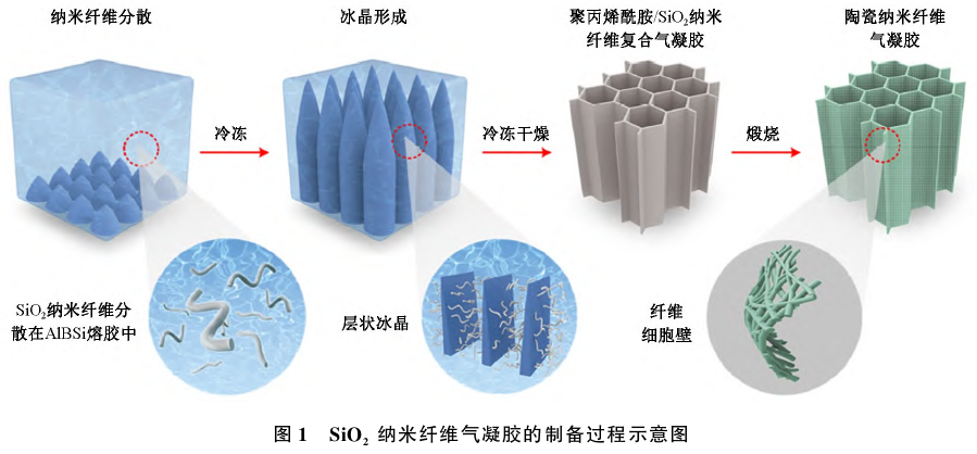 SiO2气凝胶是气凝胶领域的主要研究方向,为满足实际应用需求,制备具有良好力学性能且超轻多孔的SiO2气凝胶成为科研人员的研究热点。