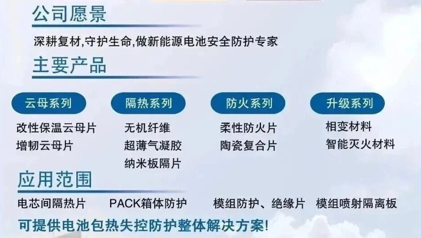 新能源电池安全管理解决方案呼之欲出,特别是,具有隔热、阻燃等功能特点的新材料受到市场青睐,气凝胶隔热片是其中最重要的新材料之一。气凝胶隔热片主要用于电池包中、电池单体之间的隔热、阻燃,也可用于车身的隔热、阻燃。气凝胶企业产业链从成胶,封装,到电池包、管道等下游应用,从材料的前驱体到各种纤维如陶瓷纤维,玻璃纤维,泡棉等,以及封装材料如PET、PI膜,热熔胶、硅胶框等,同时也包括在生产过程中的设备,如超临界设备,热压机,模切设备。欢迎相关产业链人士加入。