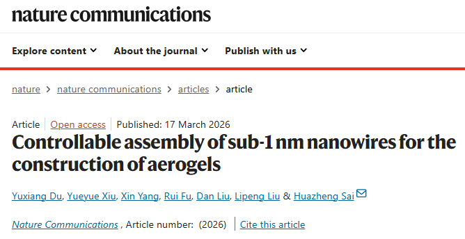 这项研究不仅实现了材料尺度上的突破,更为高性能气凝胶的设计与开发提供了可复制、可推广的全新思路,推动气凝胶材料正式迈入亚纳米新时代。相关成果发表于国际权威期刊《nature communications》该研究获得自治区自然科学基金项目支持。