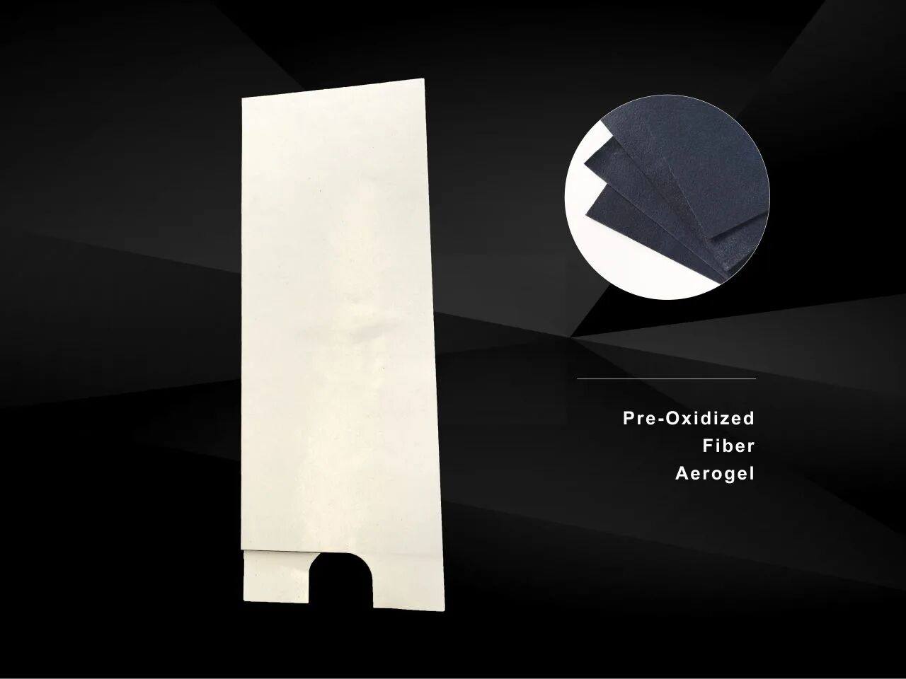 膜封气凝胶隔热垫是以陶纤气凝胶,湿法波纤气凝胶,预氧丝气凝胶为基材,根据不同的应用辅以多种封装工艺生产的隔热垫。其具有耐高温(最高可达1300摄氏度),优异的电气绝缘性能(阻燃可达VO级别),优异的隔热性能,同时具有尺寸公差小,表面平整等特点,能够完全适配锂电池PACK自动化装配工艺。