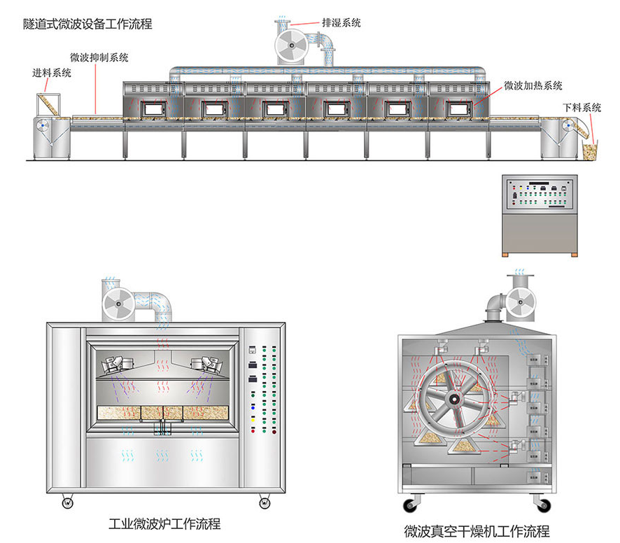 山东科弘微波能有限公司微波固化设备外观设计是隧道一体化式、模块化设计,微波频率为2450MHZ两大系列的GMP,是严格按照FDA标准研制开发微波能应用设备,设备采用一键式控制系统,效率大幅度提升。