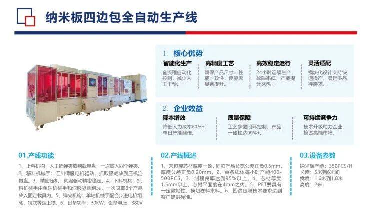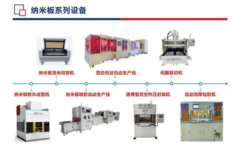 鑫台铭专注于智能压装技术,致力于纳米板和气凝胶隔热垫的压制和封装设备解决方案,涵盖纳米板粉末成型机、纳米喷胶自动线、包封自动线、带硅胶框自动线,真空热压机、伺服裁切机、自动测厚贴胶机等设备,获得实用新型、发明专利以及软著等近百项,与国内多家客户长期合作。