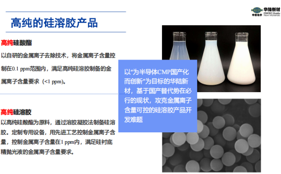 在硅酸酯技术的延伸应用上,华陆新材自研的硅酸酯制备技术能够稳定生产出纯度达4N级的产品,且已掌握将其提纯至8N的工艺,为国产半导体CMP抛光液达成世界最高水平提供了关键前提。